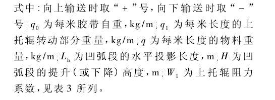 平穩(wěn)運行。實際的設(shè)計計算表明,對于一般的皮帶輸送機凹弧段半徑的計算,式( 1) 的計算結(jié)果可滿足要求。但在某些條件下,式( 2) 、( 3) 的計算結(jié)果也會大于式( 1) 的所得,從而導致半徑過大給工藝布置帶來一定的困難。查式( 2) 、( 3) ,可采取加大拉緊力的方法以增大Tc值,使其計算結(jié)果得到減小。下面將討論凹弧段起始點張力Tc的計算方法。