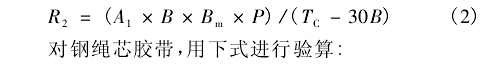 由式1可計算得出凹弧段的最小半徑。但是當膠帶的張力過低時,膠帶的邊緣處有可能產(chǎn)生皺曲,將無法保證皮帶輸送機的安全運行,因此需對該半徑值進行必要的校核。鑒于目前國內(nèi)尚無成熟的計算公式可循,建議采用美國輸送設(shè)備制造商協(xié)會聯(lián)合會推薦的公式對最小半徑進行驗算,以保證膠帶具有足夠張力,避免在凹弧段處的膠帶邊緣出現(xiàn)零張力'對織物芯膠帶,用下式進行驗算: